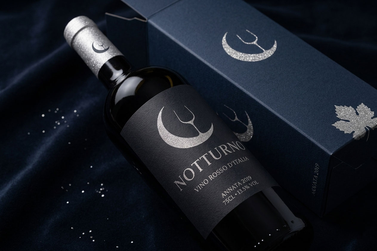 Notturno was built around a specific concept: wine as a nighttime ritual. The midnight blue, silver, and crescent moon color scheme gave the product an almost mythological aura that captured the attention of wine lovers on social media even before its official release. The first production run sold out in 11 days. Distribution expanded spontaneously to France, Germany, and Switzerland thanks to interest from importers who had discovered the brand online.